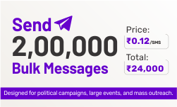 Bulk SMS has 95% open rates and is read within 3 minutes on average. It’s cost-effective, instant, and doesn’t require internet access — making it ideal for reaching your target audience directly and quickly.